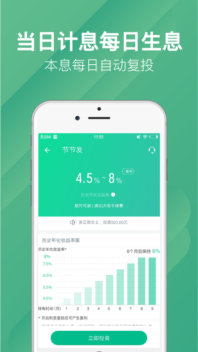 利息自动复投:每日利息自动加入本金,“利滚利”复利最大化您的收益