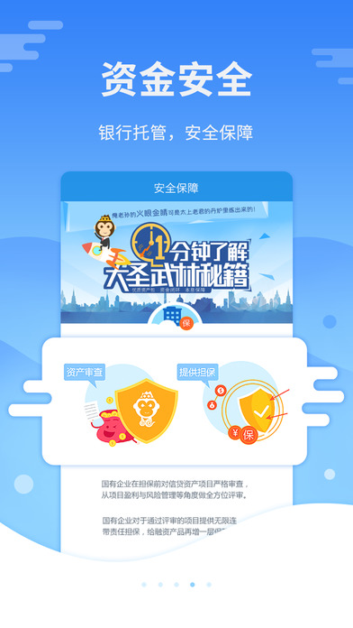 1)保障一:大圣理财的产品均受到国家权威机构监管,资产包来源渠道多样化,可有效过滤风险,筛选优质信贷资产;