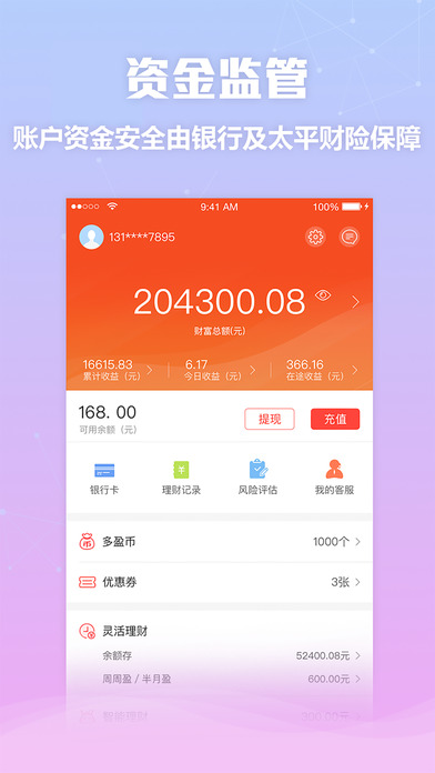 3、使用多盈理财工具,让懂理财的人帮您选理财精品,让爱理财的您盈更多,享受超越银行的理财体验。