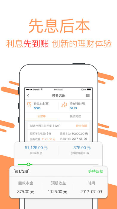 【先息后本】独特的还款机制,让用户最先得利,投资赚钱的同时不怕资金周转困难,每月先拿到利息,到期还本,资金安全更升级;