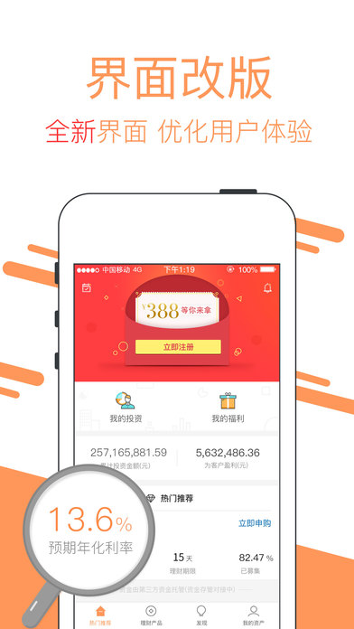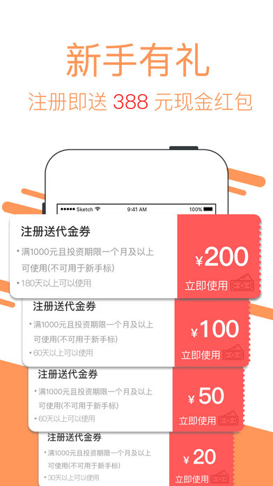 【新手有福利】用户注册通通理财即可获得388元现金红包组一份,优化投资成本。不定期上线活动,增加用户体验;