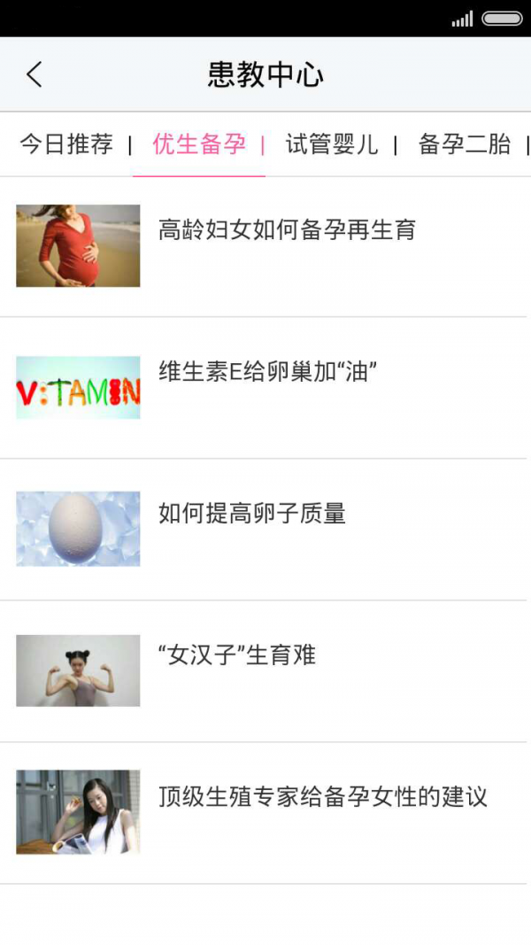 资讯:每天为您推荐适合您的备孕科普知识,好孕经验、备孕食谱、试管婴儿相关知识在这里都能找到