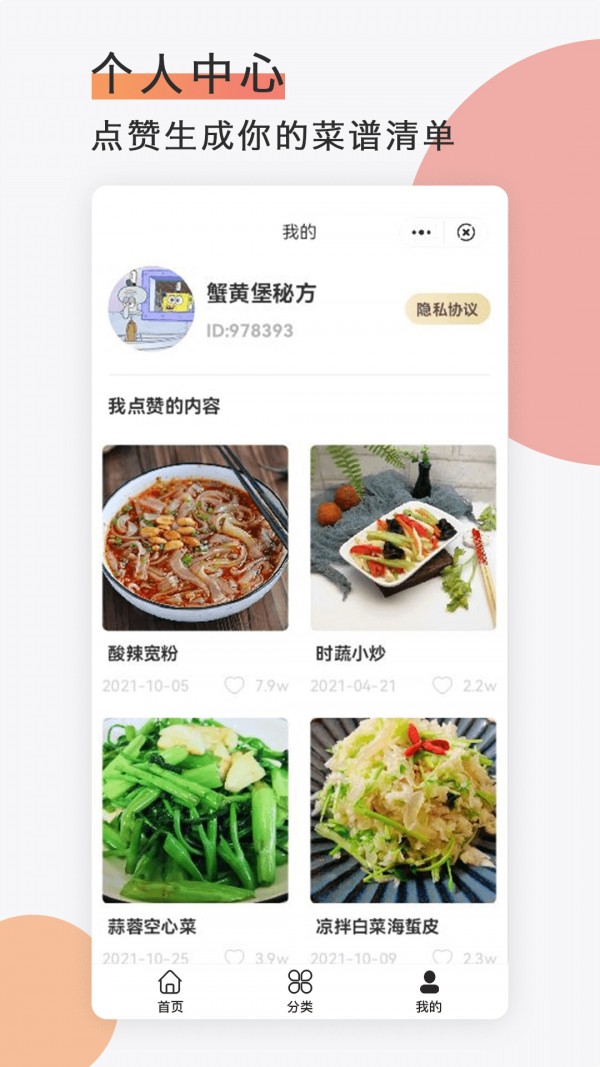 3、【菜谱分类】专业的分类,数百万美食作品,满足你对美食的一切幻想。