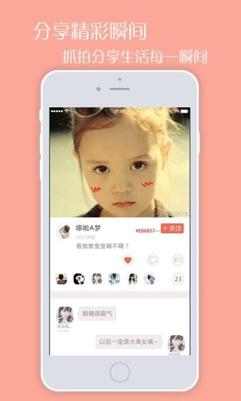 妈蜜提供拍照、滤镜功能,更有萌系、时尚流行贴纸,辣妈美颜美图、萌宝萌图,一键生成。相册是最好的日记,与家人分享亲子瞬间,与朋友互动往来,共享甜蜜。