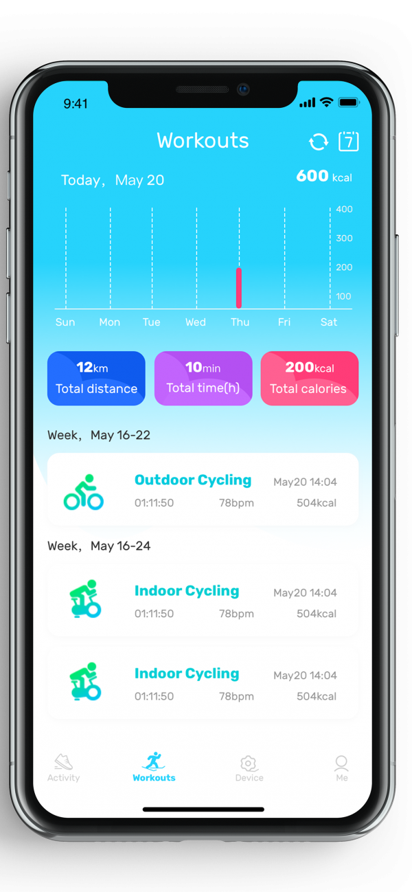 展示24小时中每个活动时间的运动量。以及每周、每月的总运动量和趋势统计图表。