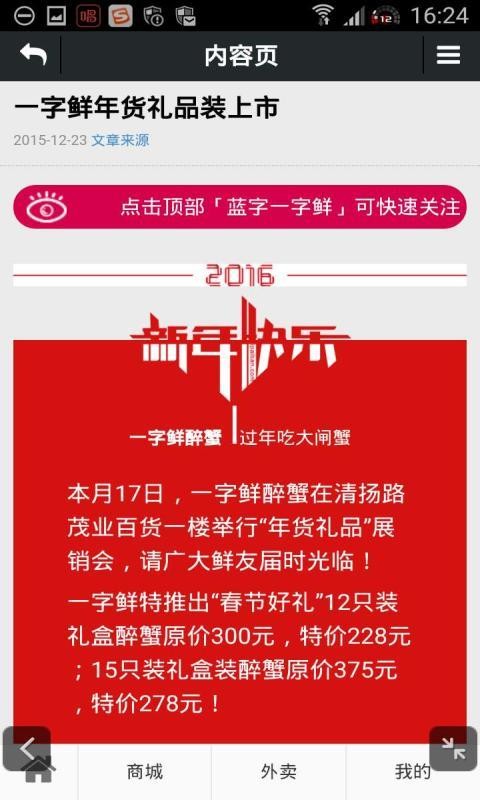 一字鲜是吃货的福音,在这里总能找到吃货们梦想的新鲜美味的美食;我们在这里相遇,共同找到我们心中理想的美食,美食之旅从一字鲜开始。一字鲜是江南熟醉蟹的独立品牌!创造性的将活大闸蟹烧加上米酒秘制成香味可口的熟醉大闸蟹,到手即食,美味无边。