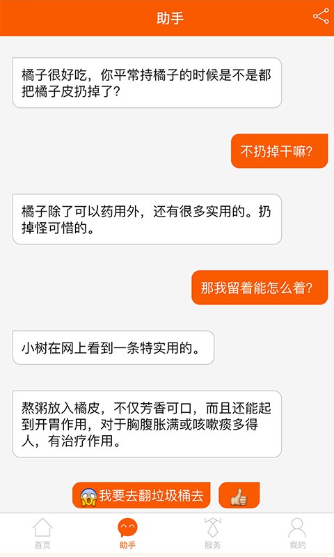 和逗比的小助手进行趣味性的闲聊瞎扯淡~打发时间的神器又可以学习到新的健康知识~