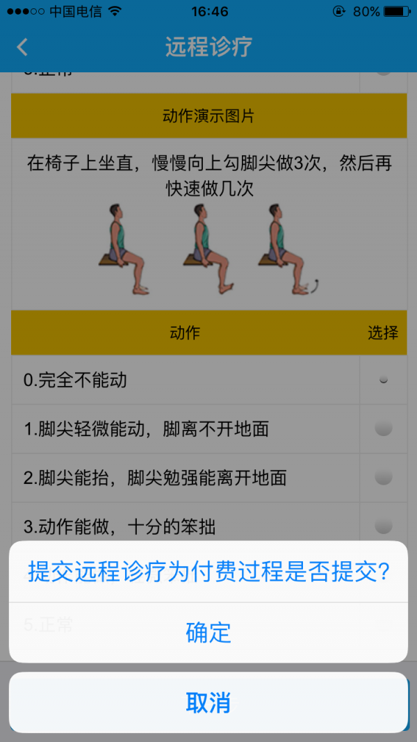 可以让患者通过本APP软件,实现康复在线咨询、专属康复医师绑定,远程康复病历上传、康复数据上传,康复指导计划下载等功能,通过APP软件相配合的远程诊疗设备,由专业资质康复医师指导下,完成远程康复训练,从而解决各地求医、住院康复困难等问题,节约康复训练成本。