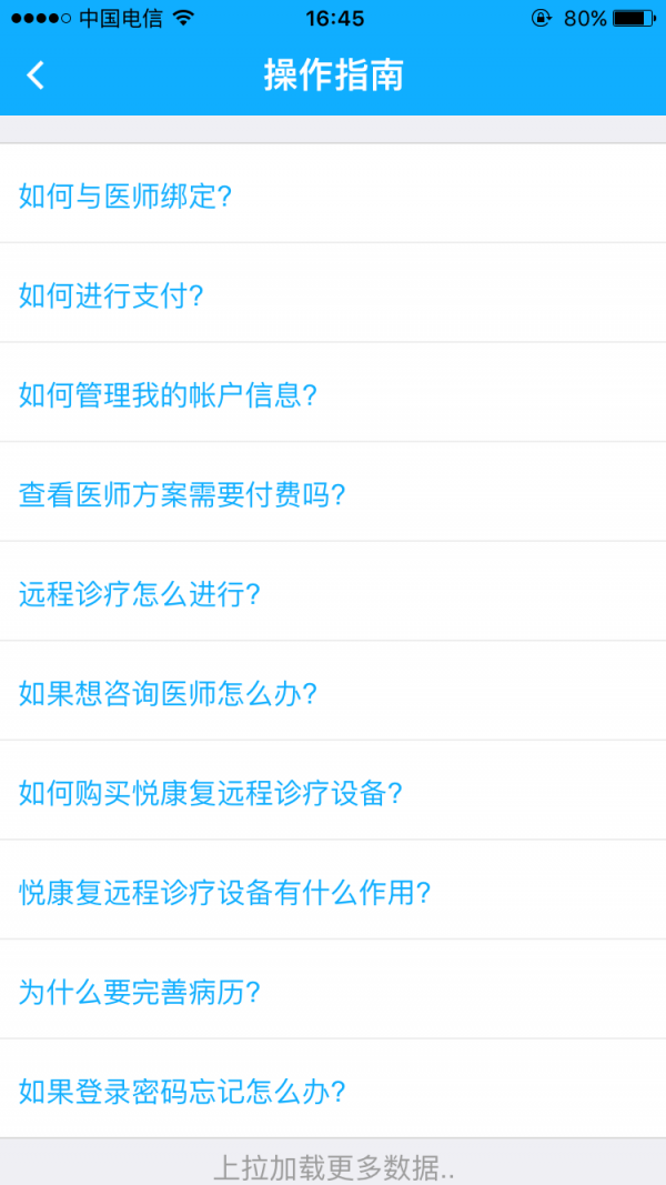 当前版本V0.3.1,更新实现康复在线咨询、专属康复医师绑定,远程康复病历上传、康复数据上传,康复指导计划下载。