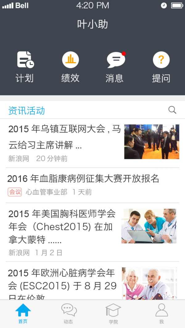 1、看资讯——丰富的各类资讯(部门活动;公司新闻;行业前沿资讯)