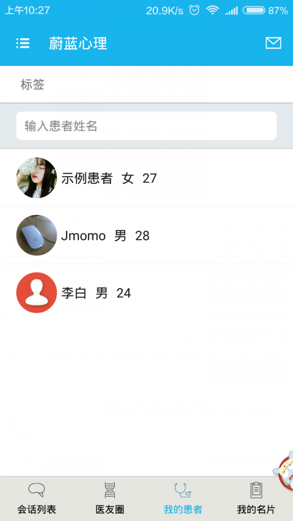 提供医生医患聊天,病人管理等功能