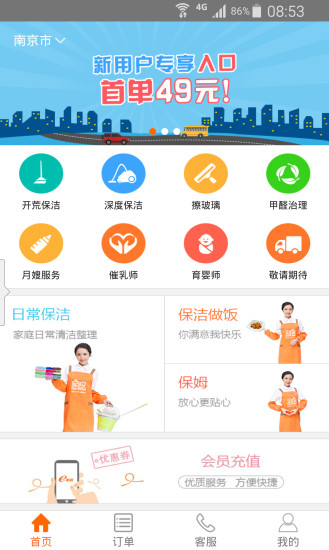 3、在线预约、在线支付、等功能让你的家政服务更快捷。