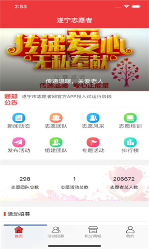 1、遂宁志愿者凝聚正能量,共筑公益梦。通过本软件,市民可注册成为志愿者。