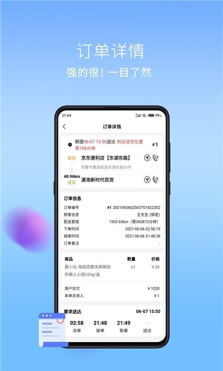 干饭去配送端APP是干饭去外卖专为配送员量身定做的配送端软件,服务于广大的加盟商和自营配送团队,旨在帮助配送员更好、更快地为干饭去外卖商家提供配送服务,配送员可以在该APP方便的接收配送订单、管理订单信息、查看统计数据等。