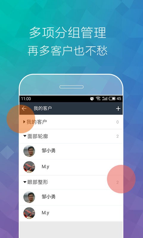 通过丽美度,您可以毫不费力地建立、管理自己的客户群体,掌握客户的求美进程,随时随地运用最优质、便捷的集成专业医美知识模板和顾客一道讨论变美方案,在不影响个人生活的情况下,利用碎片化时间在线解答顾客问题,和顾客建立起良性、长久的合作关系。