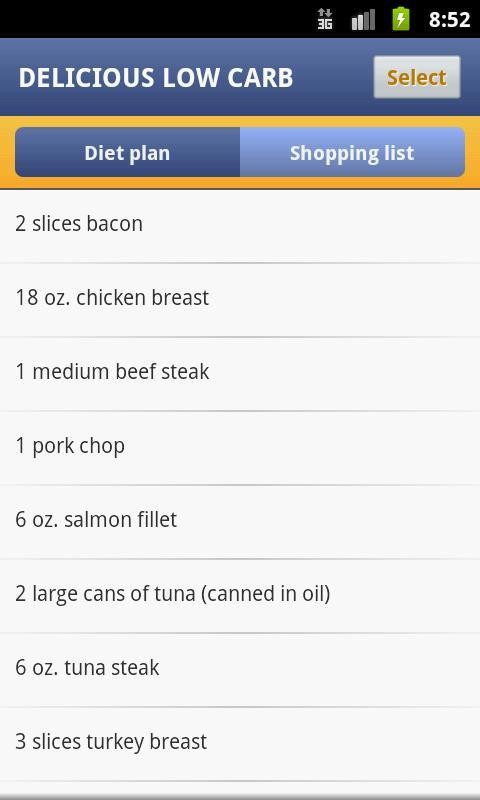 为每个饮食计划制定购物清单;