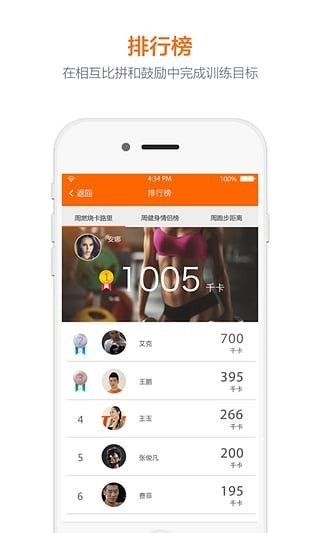 卡里路排行榜、健身情侣排行榜、跑步距离排行榜