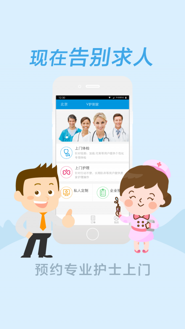 V护到家—职业护士上门打针输液换药,V护到家是中国一家职业护士上门护理的 o2o专业服务平台。基于移动互联网,V护到家专注连接家庭和护理,为需要护理的家庭提供专业、安全便捷的标准化护士上门护理、体检等服务。