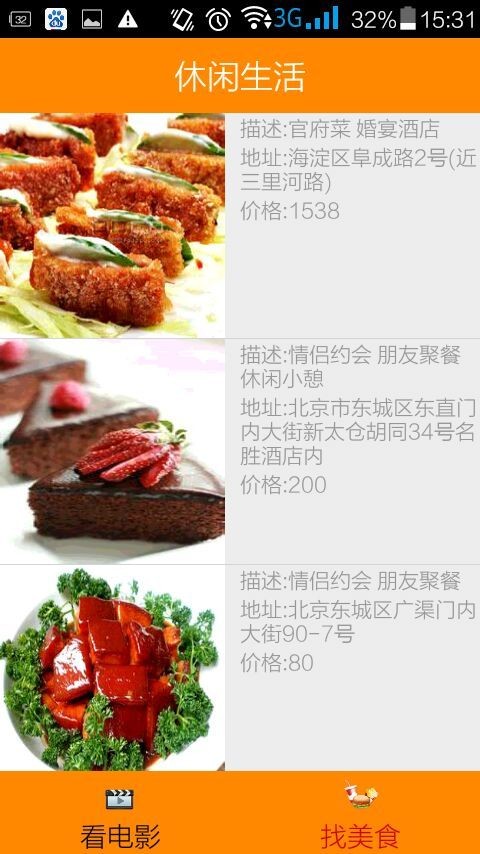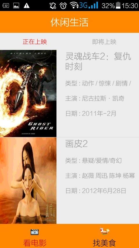 本APP为了您的生活更加多姿多彩,更加充满乐趣。您不但能从这里找到惊险刺激,好玩搞笑的电影,还能找到自己喜欢的美食。尽情评论电影好坏。一键电话订餐,想做什么就做什么,要的就是开心