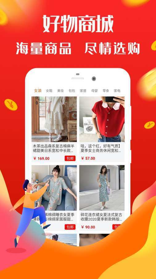 1.品类丰富:百货商城覆盖生活全品类商品,衣服、包包、鞋子、美妆、家居、零食、家电等等应有尽有,让你一站买齐所有商品,省时省力。时尚生活,低价玩转。