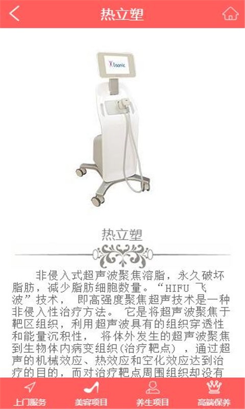 主要经营;中医调理技术:百道筋骨堂 抗衰项目:美国超声刀抗衰,韩国水光针 瘦身项目:美国热力塑瘦身 激光美容等、保健、调理,治疗四大类产品,竭诚为顾客关注健康美丽、生活品质。