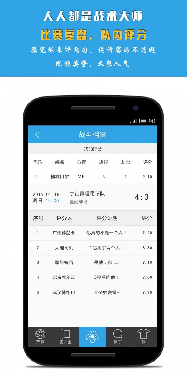 通过这款软件,我们可以了解更多足球赛事资讯,还有各种球员数据!这球迹app一款无门槛简易好用的足球赛事运营平台,人人都是足协主席,赛事管理器,数据排行榜,业余团队也可以像国际足联一样,进行专业高效的赛事运营。高格调职业风格的球队专业管理工具,重交流互动有爱的比赛复盘吐槽神器。