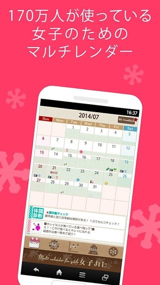 活用日历・健康提醒机能的话,女子日历将从今天开始把妳的预定与健康好好的管理,每天都是美好的!
