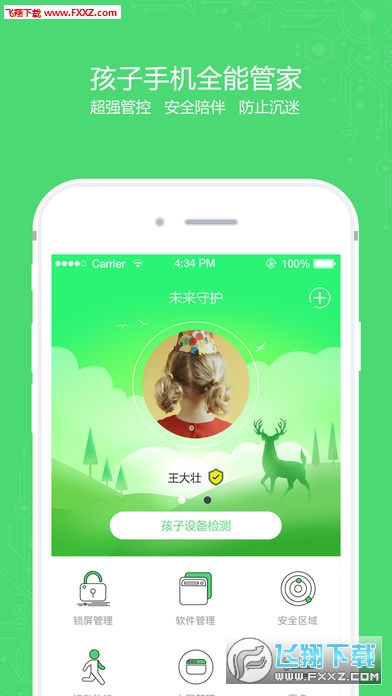 “未来守护”是一款手机管理软件,无需绑定,安装简便,家长可通过设置锁屏管理来管控孩子玩手机的时间,设置软件管理来管控孩子某款软件的使用时间,让孩子合理的使用手机,家长也更加放心的把自己手机给孩子玩。
