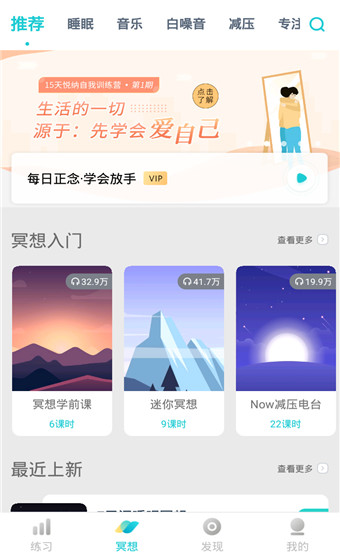 很多小伙伴们都会有失眠的情况,那么怎么才能摆脱它呢?可以利用这款软件来帮助自己!这Now冥想是一款能够促进用户睡眠的手机软件。该软件能够极大的为用户解压,内置大量高质量的专业减压课程,能够让用户尽情释放心中的压力。除了能够对用户进行减压外还能够疗愈、情绪管理学习、人际关系处理、个人成长等等。