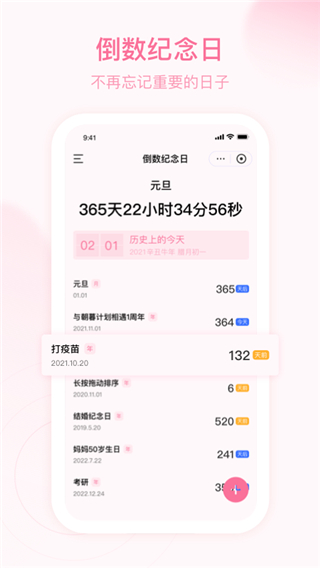 2、重要的日子可以添加倒计时提醒,比如生日、结婚纪念日、发薪日等都可以设置。