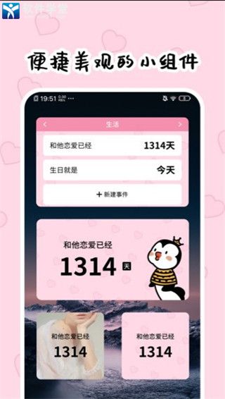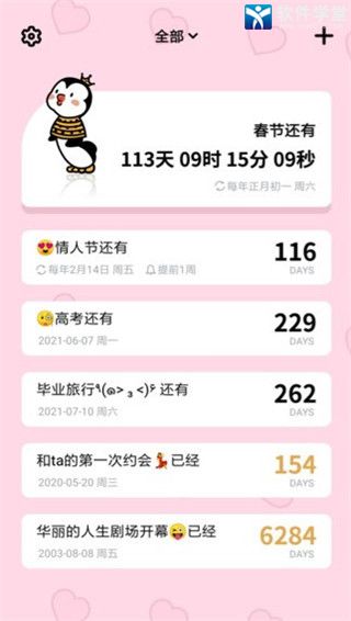 该软件是一款很受女生用户喜爱的倒计时软件。提供了各种萌萌的皮肤模板,你也将重要的日程一一添加其中,选项喜欢的模板使用。无论是学生族还是上班族都可以用哦,让你不错过一场考试、一次约会、一个重要会议安排等等,是一款帮你记录生活中重要日子的倒计时app。
