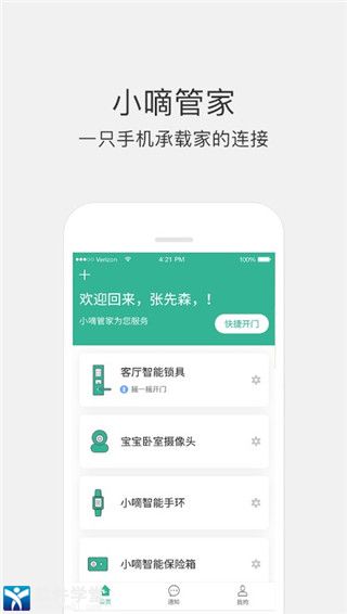 4、小嘀管家手机可以满足家庭的需要,用户可以控制客厅的智能锁、宝宝卧室的摄像头。