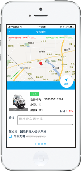 辆运管人员接收无锡出行分时租赁线上运维任务