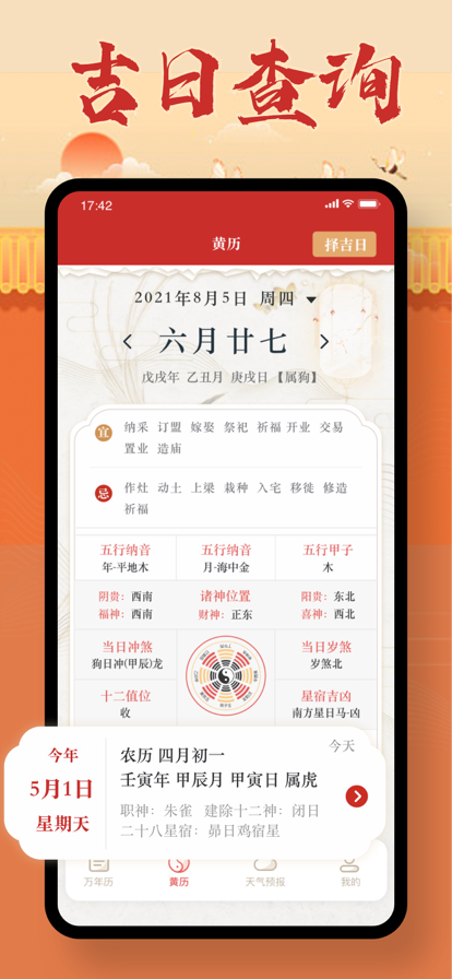每日宜忌必备,内容及时更新,让用户办事都可以得到查看。