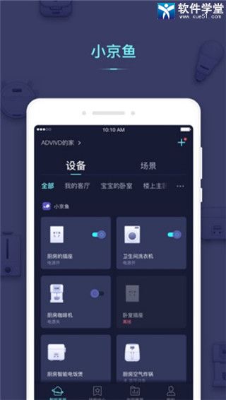 3、从无数遥控器的杂乱中解放出来,“小京鱼”为您提供统一添加、管理、操控智能设备的技能。通过智能场景,您还可以设置与设备之间的小默契。