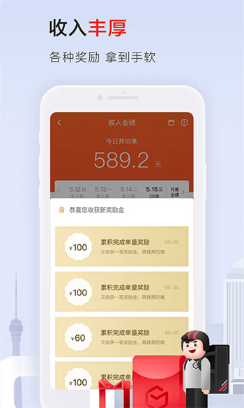 - 每一单的收入会自动入账,可以查询到自己的历史接单数据,帮助收入稳定;
