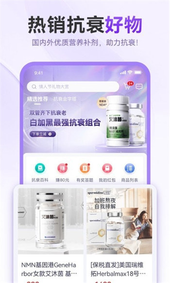 拥有非常齐全的能够抗衰老的相关资讯,用户可以进行阅读借鉴,拥有超多具有国家药品监督管理局备案的各种护肤产品,用户可以放心使用,具有是正品,质量有所保障,可以根据自己的皮肤状态进行购物。