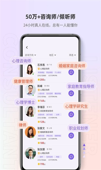 1,拥有上十万的心理咨询师为用户在线服务,能够全天24 小时真人为用户提供一对一咨询;