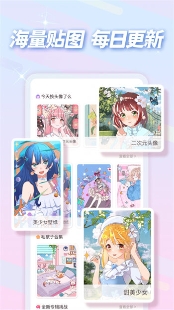 这款软件拥有海量的优质壁纸资源,想怎么换都可以快速搞定!这趣贴图是一款非常有意思的贴纸软件,拥有海量的优质壁纸资源以及各种风格的头像资源,各种上色素材用户可以随意按照自己喜欢的颜色进行填色,能够创作出个性的画作,可以实时的保存到本地,能够应用成壁纸或者头像。