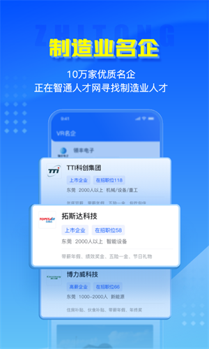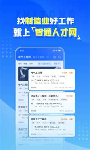 大家可以用这款软件找到更多岗位,还能自行筛选,非常强大!这智通人才网是一款免费求职和招聘的软件,致力于为用户提供一个智能高效的招聘、求职服务软件,为用户提供了大量的就业机会,一键即可轻松在线预约面试,制造业有大量的著名公司和高薪工作,了解周边优质企事业单位。