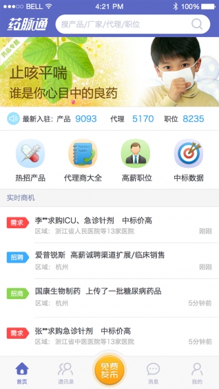 药脉通app是一个医疗服务类移动应用,拥有200万医疗销售社群,海量药械信息查询、发布,实时、高效、免费,让医疗销售更轻松。医疗销售的新机会(药品器械耗材、医院药店诊所),尽在药脉通!