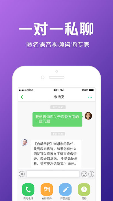 1、[电话倾诉] 随时连接,无需预约,情感、情绪、职业、人际关系等问题,一个电话就能搞定。【新手注册还送30元红包哦】