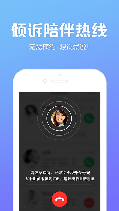 2、电话倾诉:随时连接,无需预约,情感、情绪、职业、人际关系等问题,一个电话就能搞定;