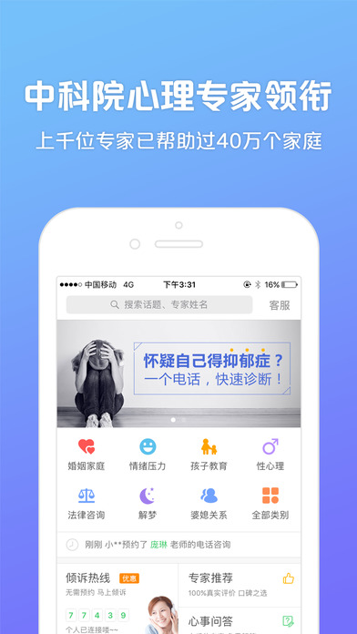 1、最权威:中科院心理研究所专家带头,入驻的心理专家都具备国家认可资质;
