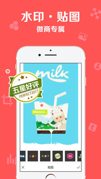 2、专属贴图,个性微商水印,加LOGO,自定义标签,文字说明、二维码添加等,满足微商店主所有的定制需求;
