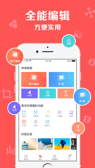 1、尺寸裁剪、滤镜、边框模板,画笔、箭头各种图片编辑功能应有尽有;