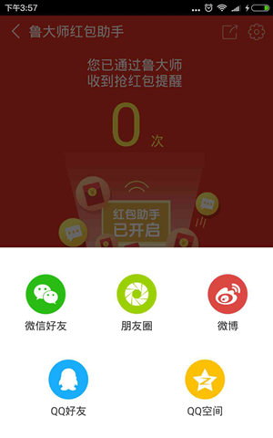 鲁大师只有保护电脑和手机系统功能吗?不是的,他除此之外还支持抢红包,而且还是实时关注红包动态,即便是在后台 一样是可以。《鲁大师抢红包》是鲁大师开发的手机抢红包软件。软件能够帮助用户关注手机红包信息,一但出现红包,自动帮你抢,相当的方便。让你每一天都能收获一笔零花钱。快来下载吧。