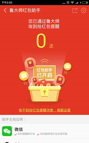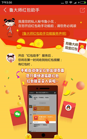 1、鲁大师抢红包助手是目前受大众喜爱,无人值守秒抢红包;