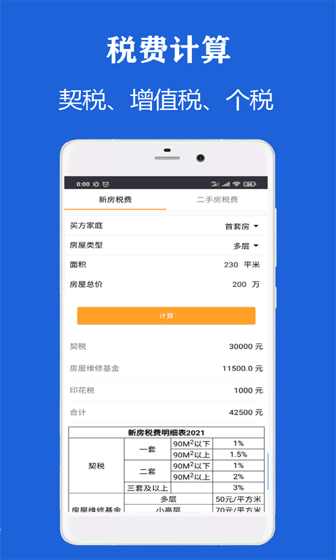 税费计算器,支持新房税费计算和二手房税费计算,买房和卖方都可使用