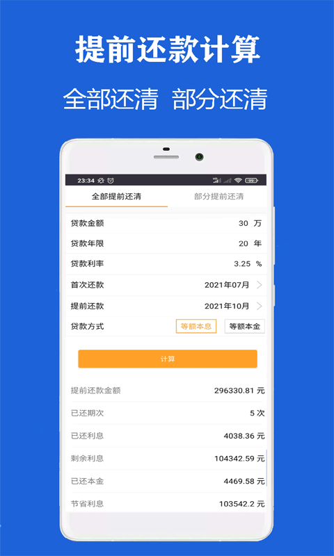 提前还款计算器支持全部还清和部分还清
